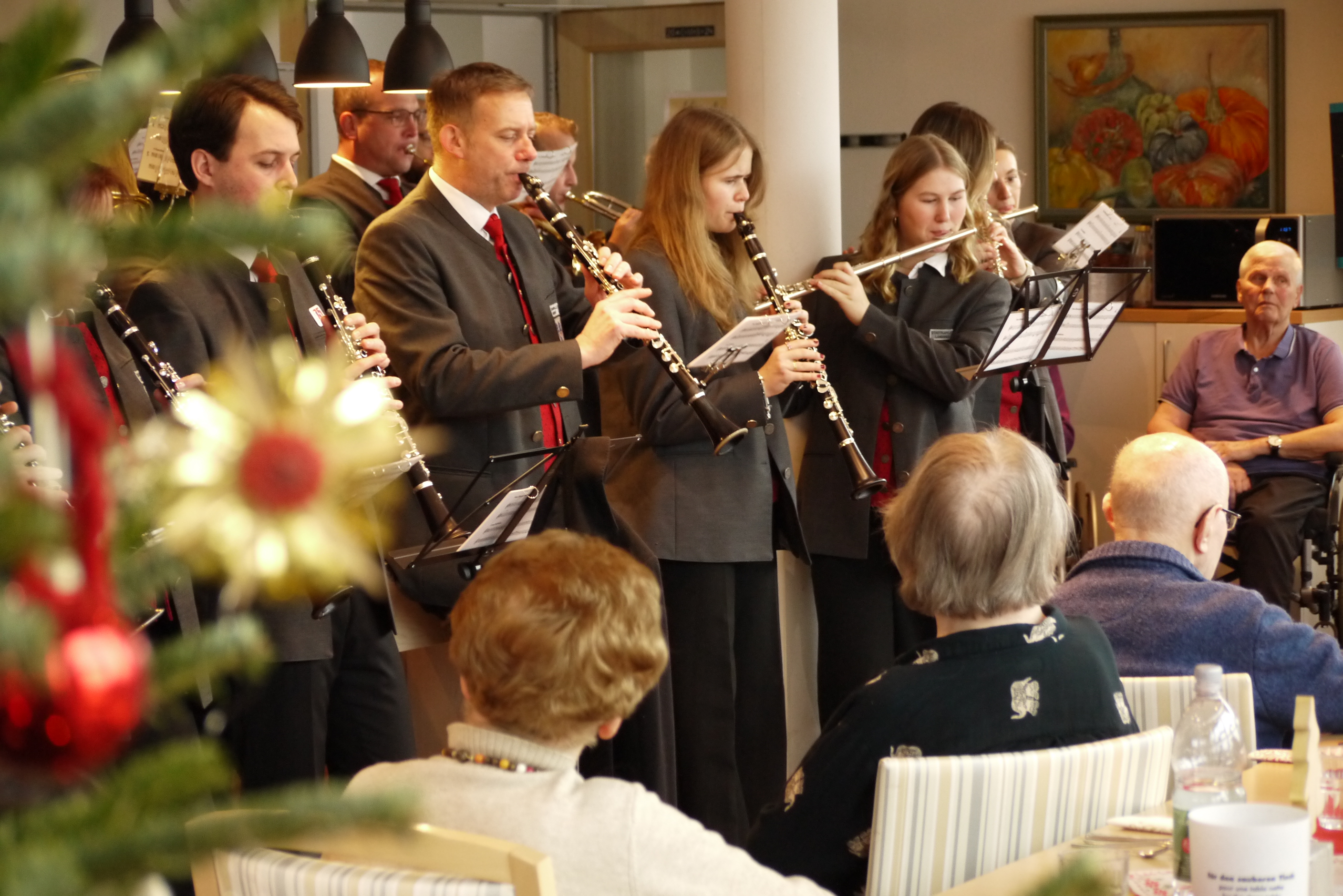 ...rückt die Stadtkapelle Landshut am Heiligen Abend aus und besuchte insgesamt sieben Seniorenheime in der Stadt. Dieses musikalische Weihnachtsgeschenk macht jedes Jahr viel Freude, und zwar sowohl für die Bewohner und das Personal als auch für die Musiker, wenn sie sehen, wie viel Freude sie an Weihnachten damit verschenken.